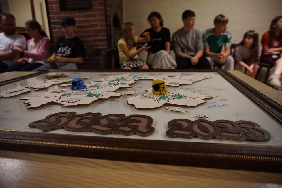 Am Nachmittag haben wir dann alle angefangen unsere Koffer zu packen und das Haus aufzuräumen. Es war nochmal ein richtig schönes Chaos und die Klamotten wurden schnell wieder zurückgetauscht. Am Abend haben wir dann unser Lager reflektiert, rausgefunden, was wir nochmal machen sollen und was lieber nicht. Dabei haben wir unsere Fotos angeschaut und es gab sogar noch eine Lagerhochzeit mit Brautführer und Blumenmenschen. Als wir uns dann zum letzten Mal Gute Nacht gesagt haben und unser jährliches Abschiedslied „Nehmt Abschied Brüder“ gesungen haben, haben wir in den ein oder anderen Augen schon ein paar Tränen gesehen. Glücklich über unsere gemeinsame Zeit und die Gemeinschaft, die wir hier gefunden haben, sind wir jetzt zum letzten Mal in diese Betten gegangen.