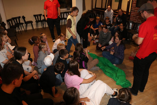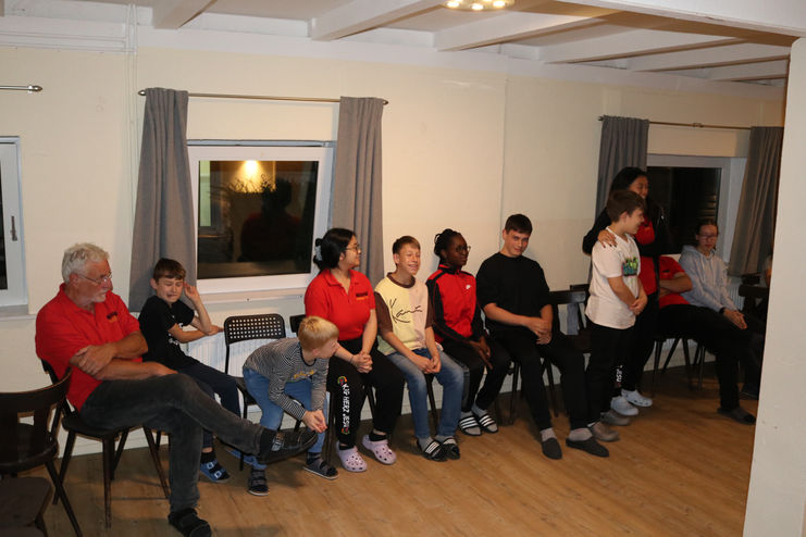 Als dann alle Menschen und Taschen zusammenpassend auf die richtigen Zimmer verteilt worden sind, haben wir uns gestärkt und mit Kennenlernspielen angefangen, uns die Namen von 32 Kindern und 15 Erwachsenen einzuprägen.