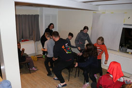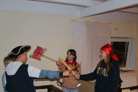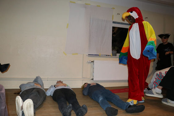 Im Nachmittagsprogramm haben wir dann die restlichen Stationen fertiggestellt und ein Theaterstück anhand von fünf Begriffen entwickelt um dann im Abendprogramm zwischen Minispielen in unserer Variante von der Perfekten Minute „Wer muss über die Planke“ aufgeführt. Dort haben wir unter anderem Watte hochgepustet, Papierboote gefalten und beladen und Planks gemacht. Nach einer kurzen Reflexion sind wir nach diesem Regentag wieder müde ins Bett gefallen.