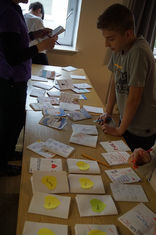 Heute war es so weit: Unser letzter ganzer Herbstlagertag stand an. Das heißt, dass wir vor allem Aufräumen auf dem Plan hatten. Um den Tag aber doch etwas schöner und ansprechender zu gestalten, haben wir am Morgen erst einmal Workshops gemacht. Es waren wieder Bügelperlenbilder und Schwerter basteln dabei, aber dieses Mal auch Buddy Books. Das sind kleine selbstgefaltete Bücher, in die wir uns gegenseitig nette Nachrichten geschrieben haben und das haben wir dann den ganzen Tag immer wieder gemacht.