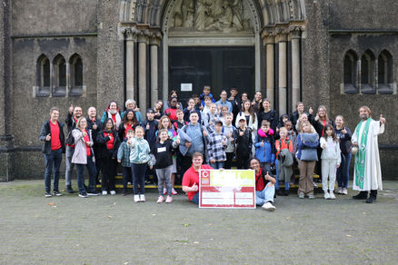 Um 9:30 Uhr haben wir uns an der Kirche gesammelt, die Koffer und Taschen verladen und von Pater Tobias den Abschlusssegen inklusive finanzieller Unterstützung bekommen.