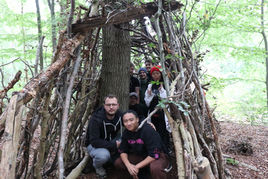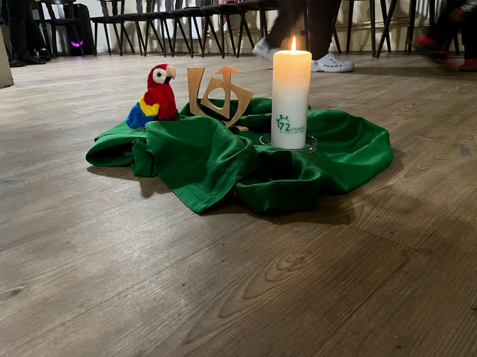Heute haben wir endlich wieder einen ganzen Tag draußen verbringen können und wurden nicht vom Regen gestört. Also haben wir am Vormittag als Sportspiel Schiffe versenken gespielt. Dabei haben wir versucht mit unseren Kanonenkugeln die Schiffe der Gegner zu versenken, wurden aber gleichzeitig von Quergeschossen bombardiert, die uns für ein paar Sekunden ausgeknockt haben. Außerdem wurde von je einem Piraten pro Team versucht, den Schatz, ein übers Feld flitzender Spieler, zu fangen. Nach der großen Schlacht und einem stärkenden Mittagessen haben wir nachmittags tolle Kojenhütten im Wald gebaut und am Abend ein Leuchtturmspiel im Dunkeln. Mit einem zum Nachdenken anregenden Wortgottesdienst haben wir den heutigen Tag abgeschlossen.